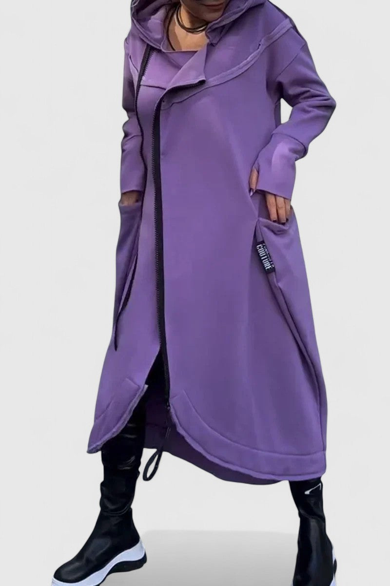 MARIE - Hosszú kabát kapucnival és cipzárral