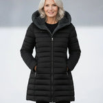 Az Olivia télikabát melegen tart anélkül, hogy volumennel terhelne. A puha fleece bélés és a steppelt dizájn komoly meleget biztosít a hideg napokon. A testhez simuló derék és az A-vonalú szabás hízelgő hatást kelt – simán követi a törzsed vonalát anélkül, hogy szorítana. A vízlepergető külső anyag megvéd a váratlan időjárástól. Maradj kényelmes és tűnj ki kifinomultságoddal egész télen.