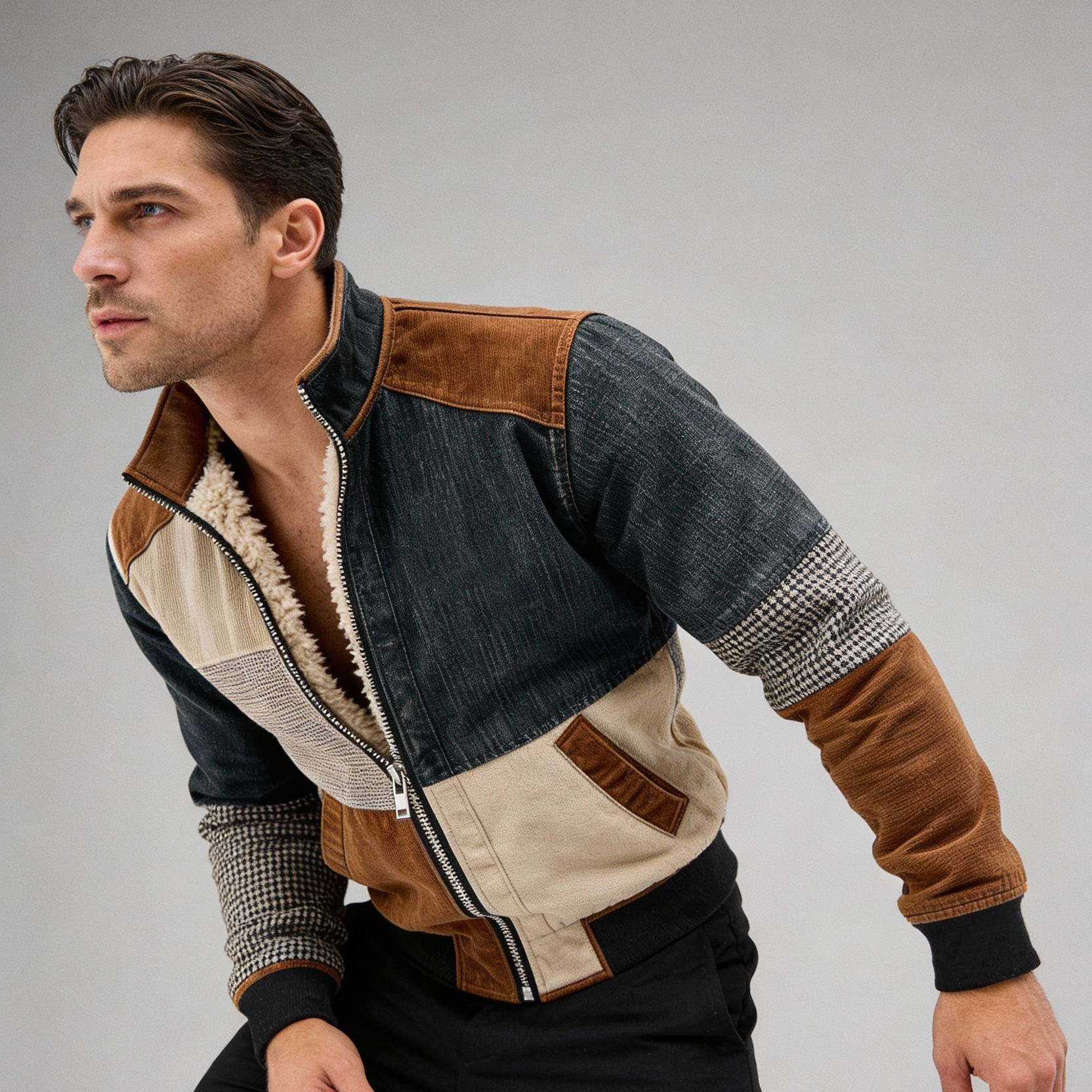 Fabian - Meleg retro patchwork dzseki cipzárral