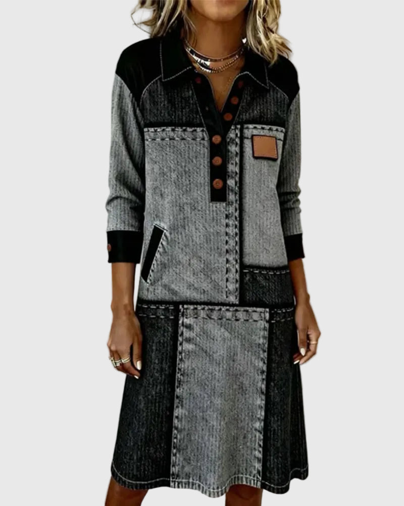 Vellora™ Színes Paneles Gombos Ruha