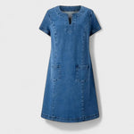 A Helga ruha ötvözi a klasszikus farmer megjelenést a lágyan omló, puha anyaggal, amely kellemesen alkalmazkodik a testhez. A praktikus szabásának és funkcionális zsebeinek köszönhetően ideális választás a mindennapi viselethez – függetlenül attól, hogy a városban, sétán vagy barátokkal való találkozón vagy.