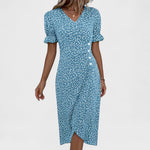 Az Irena ruha a finom virágos mintát ötvözi a kifinomult szabással, amely gyengéden eltakarja a hasat, és kényelmet, valamint magabiztosságot biztosít a viselőjének. A könnyű anyag szépen omlik, míg az örök szabás és a diszkrét részletek kiemelik a természetes bájt minden lépésnél. Ideális választás a stílussal és kényelemmel teli nyári napokra.