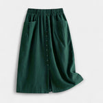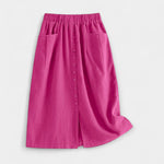 Természetes textúra és diszkrét stílus egy szoknyában, amely ötvözi a retro bájt a mindennapi praktikummal. A magas derék a női sziluetthez illeszkedik, míg az elülső zsebek kényelmet és funkcionalitást kínálnak.