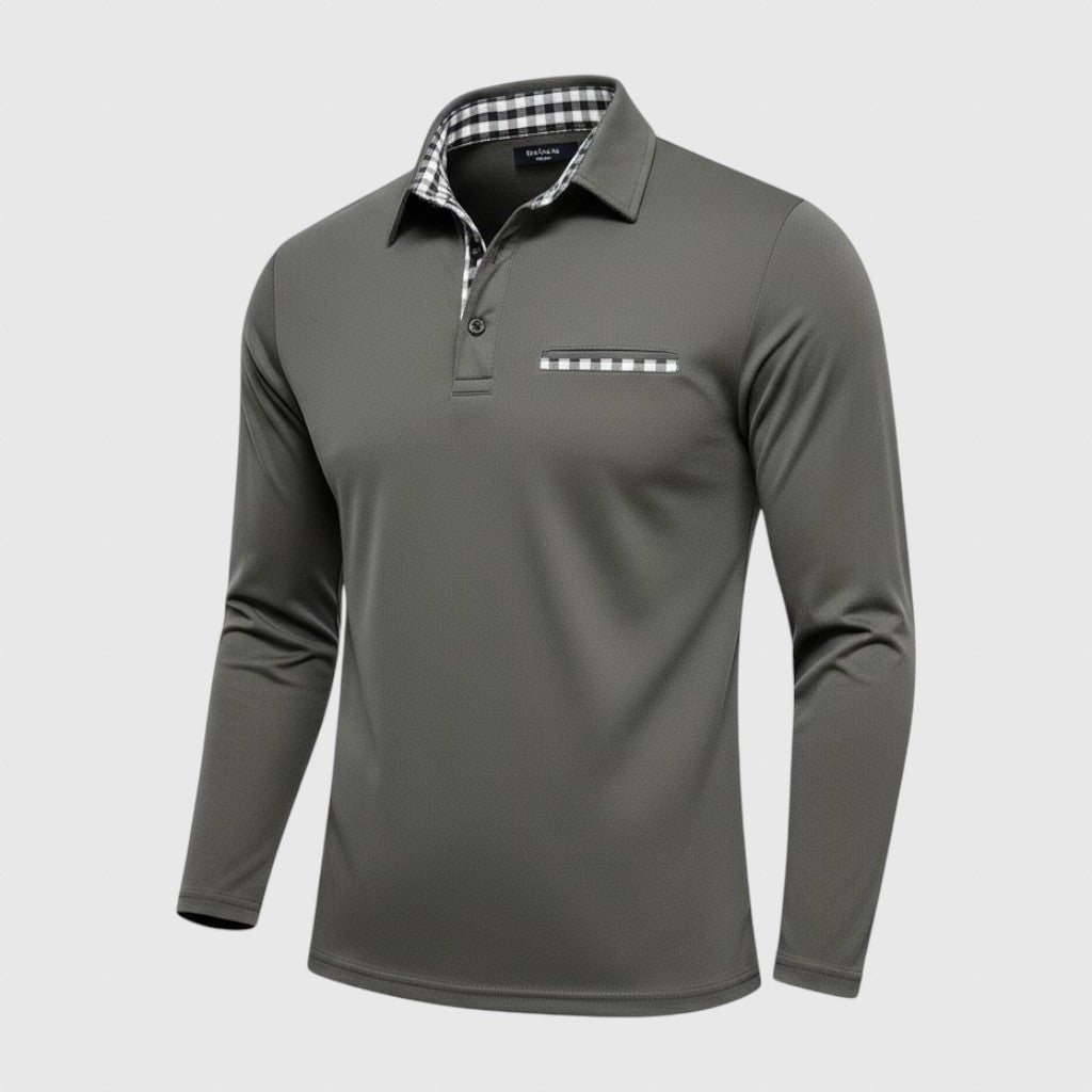 Ez a hosszú ujjú pólóing a kifinomultságot és a kényelmet ötvözi minden részletében. Az illeszkedő szabás kiemeli a férfi alakot, míg a kontrasztos gallér és a finom részletek a zsebnél elegáns árnyalatot adnak a mindennapi stílushoz. Lélegző és tartós anyagból készült, biztosítja a mozgás szabadságát és a tartósságot, anélkül, hogy kompromisszumot kötne a stílussal. Ideális választás azoknak a férfiaknak, akik tökéletesen akarnak kinézni – az irodától a szabadidőig.