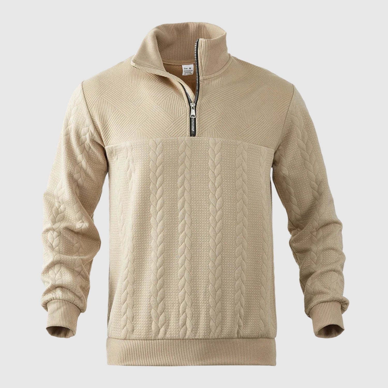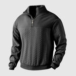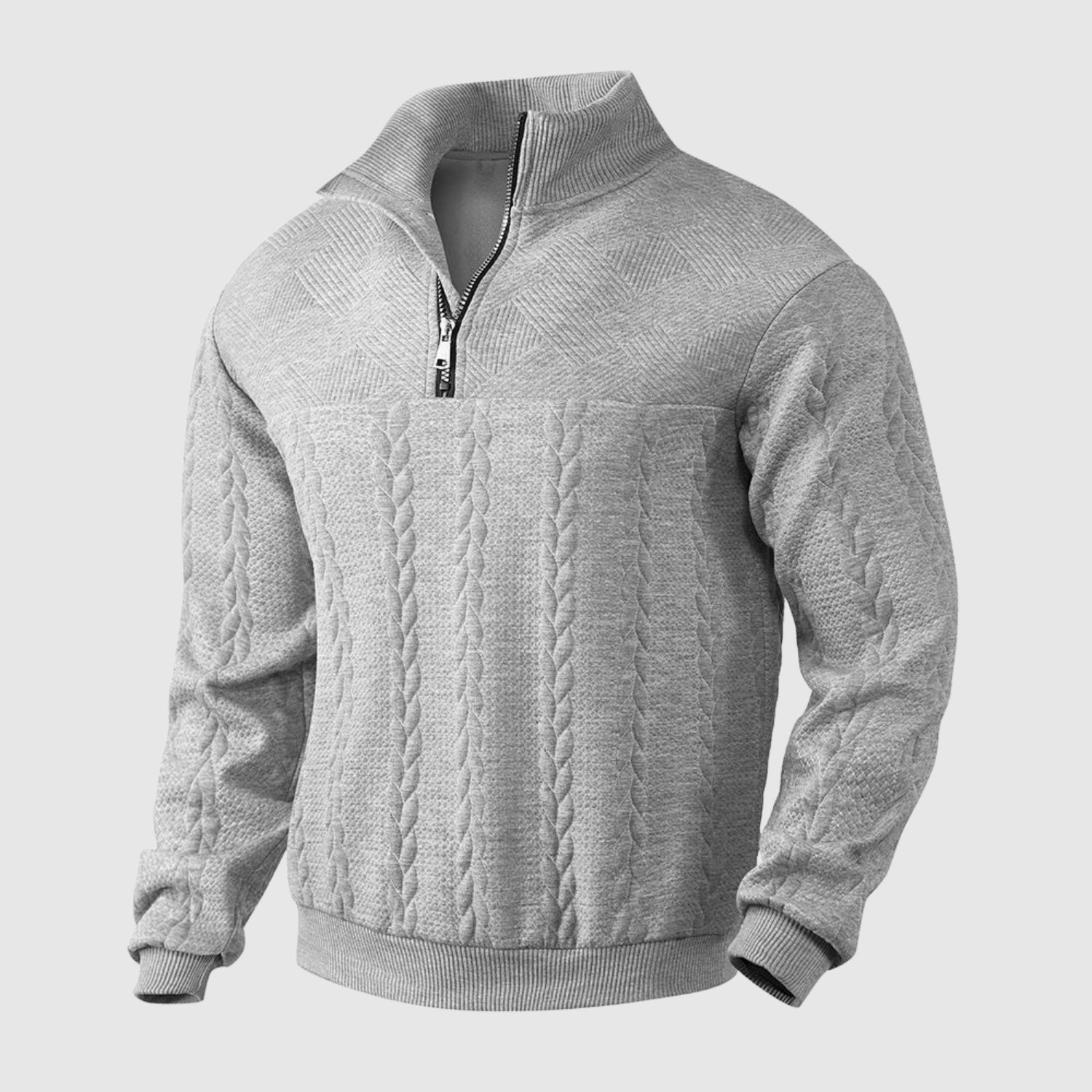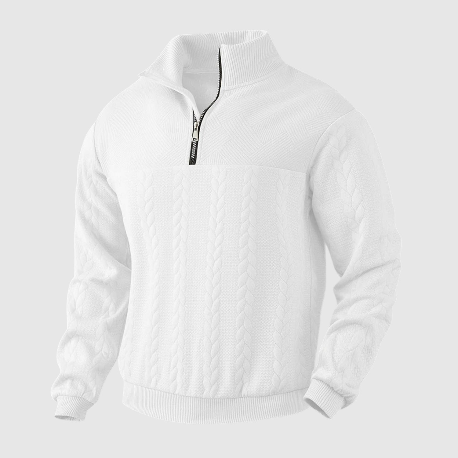 Ez a negyed cipzáros kötött pulóver a kifinomult stílus és a mindennapi kényelem tökéletes kombinációja. A puha anyagnak és a strukturált dizájnnak köszönhetően ez a pulóver rendkívül sokoldalú: ideális munkához, mindennapi viselethez vagy elegánsabb megjelenéshez hideg időben. Finom részletek, maximális hatás.